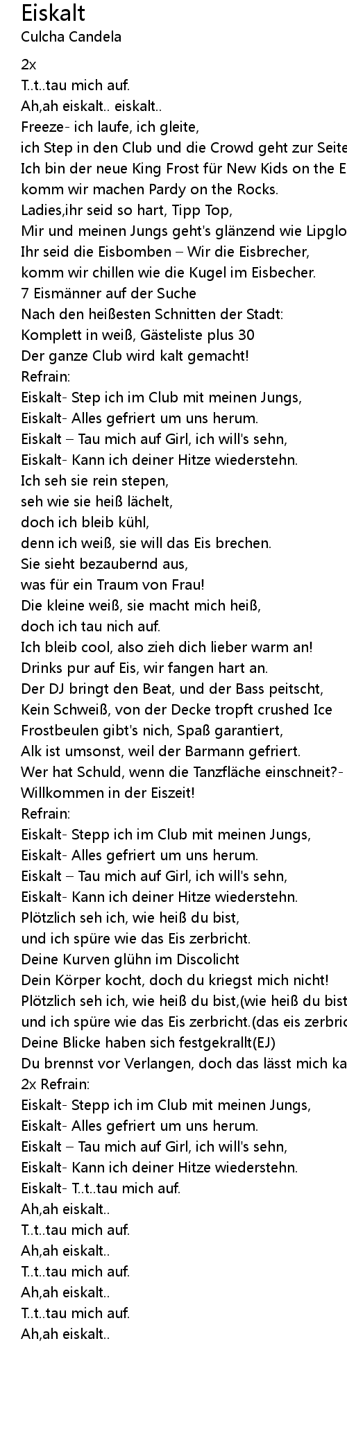 | Eiskalt T.. t.. tau mich auf. | |