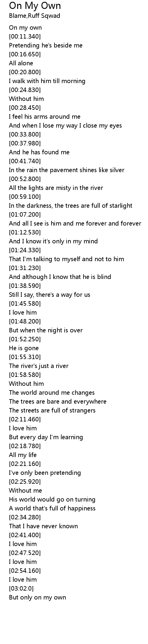 | [03:05.140] | But only on my own |