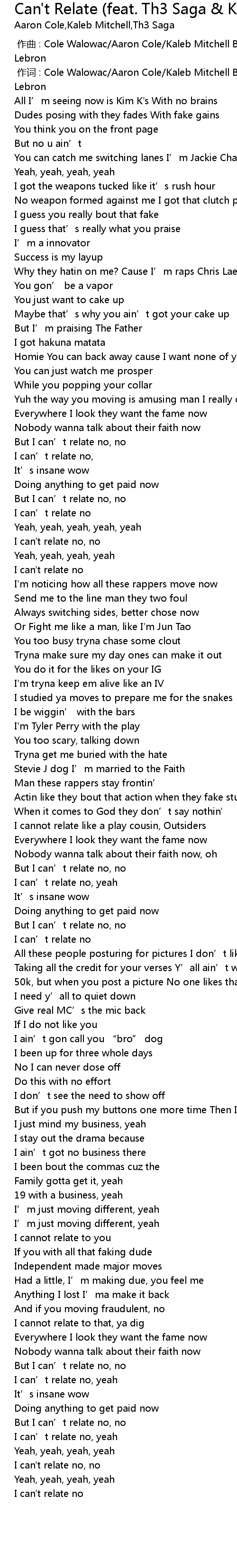 | Song | Can't Relate (feat. Th3 Saga & Kaleb Mitchell) |