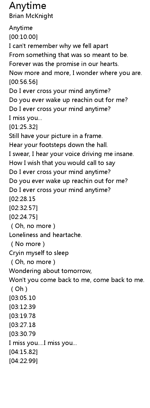 | [01:14.14] | Do I ever cross your mind anytime? |