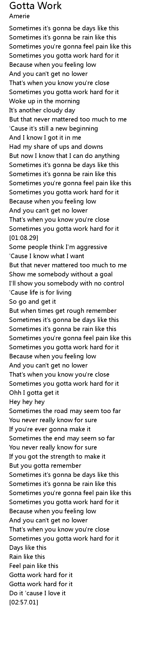Gotta Work Lyrics