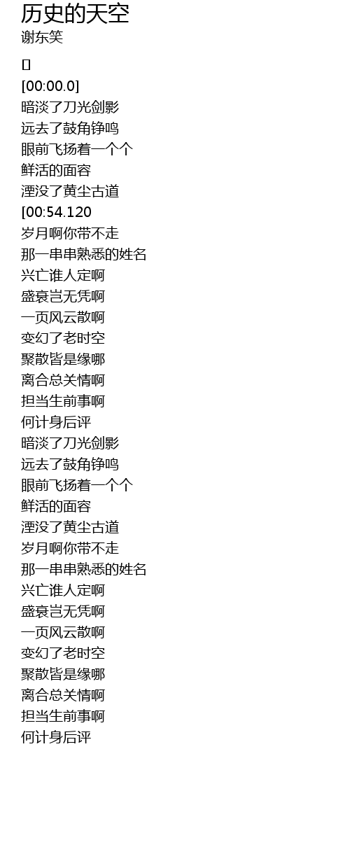 | [00:59.990] | suì yuè a nǐ dài bù zǒu |