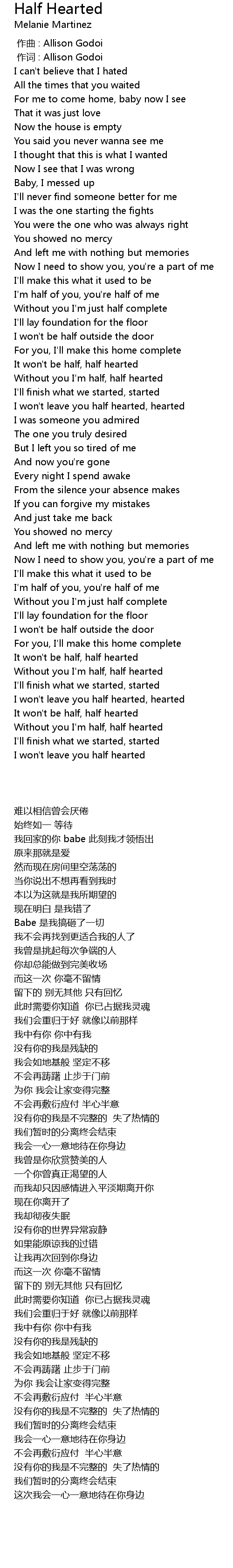 | [03:41.37] | Without you I' m half, half hearted |
