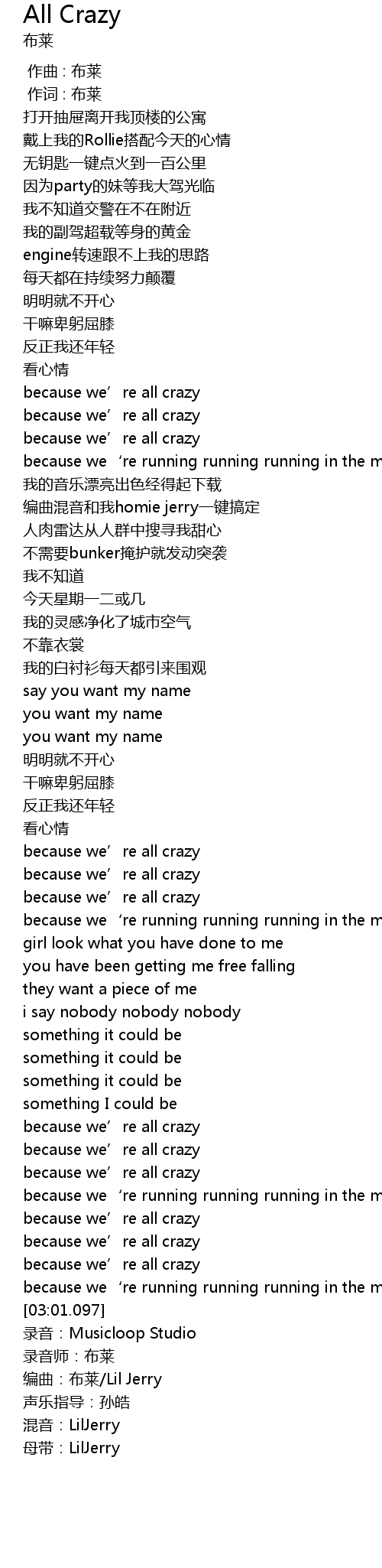 | [03:02.447] | 编曲:布莱/Lil Jerry |