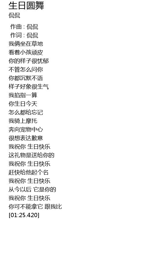 | [00:58.700] | wo zhu ni sheng ri kuai le |