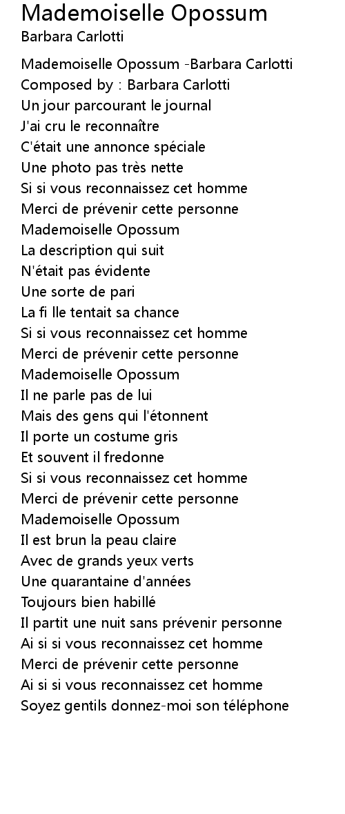 | [00:00.354] | Mademoiselle Opossum Barbara Carlotti |