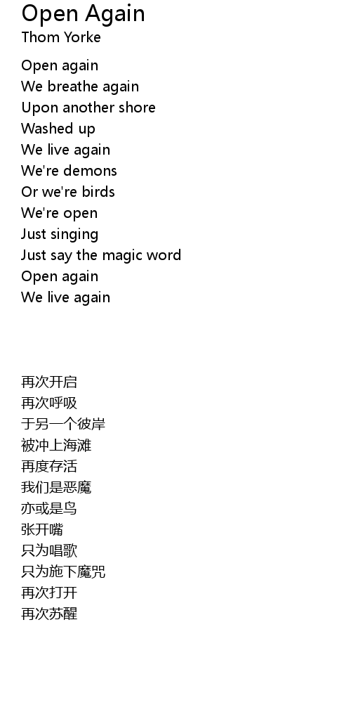 | Song | Open Again |