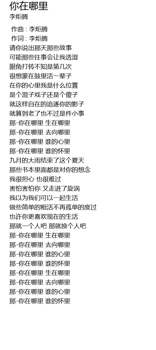 | [03:00.942] | 那-你在哪里 生在哪里 |