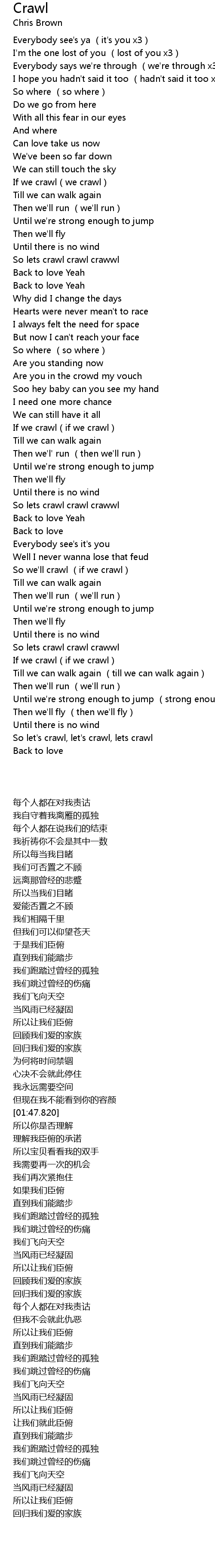 | [01:09.610] | So lets crawl crawl crawwl |
