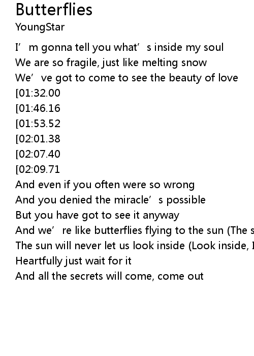 | [00:39.32][01:46.16] | And we' re like butterflies flying to the sun |