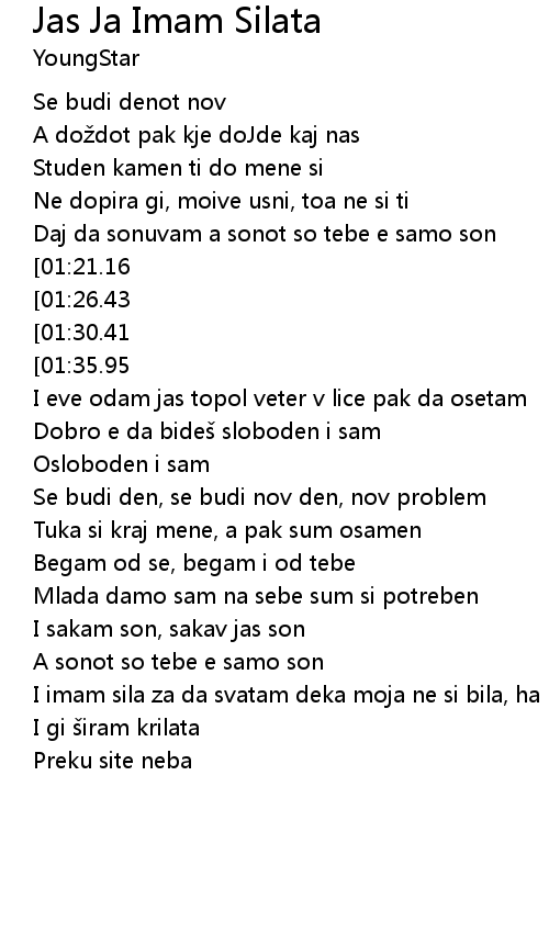 | [00:43.50][01:21.16][01:59.05][02:36.53] | Jas ja imam silata da te prebolam |