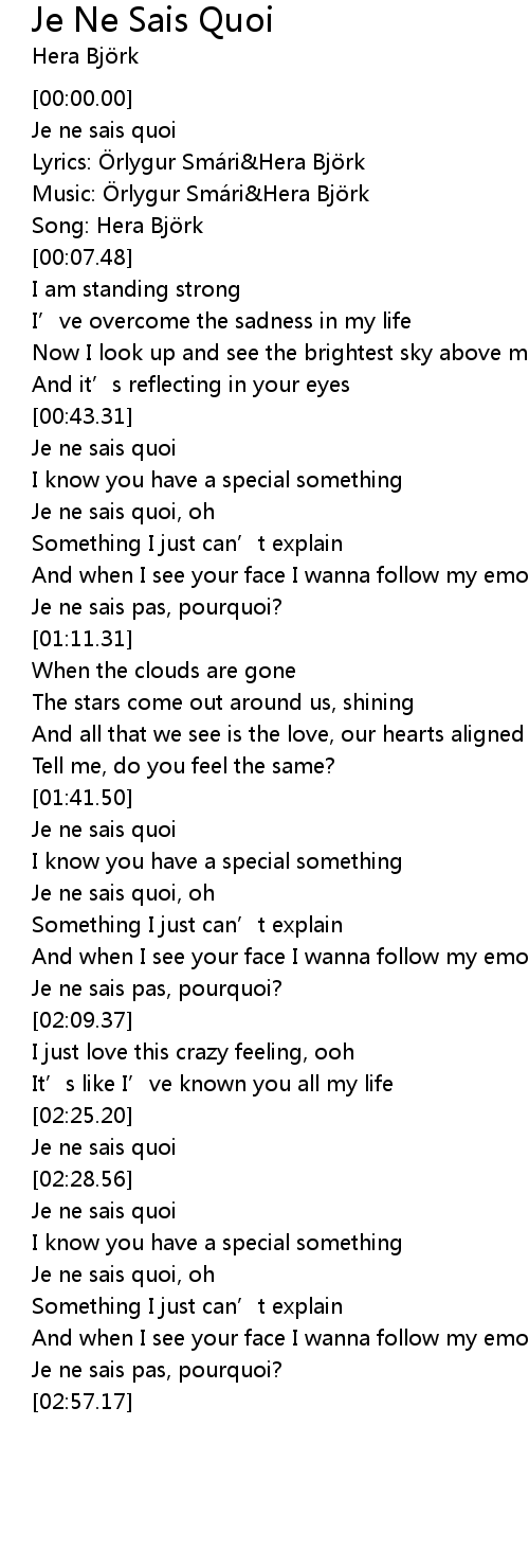 | [00:50.73] | Je ne sais quoi, oh |