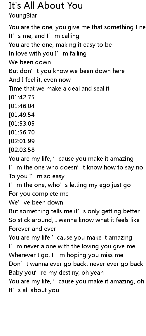 | [02:56.45] | It' s all about you |