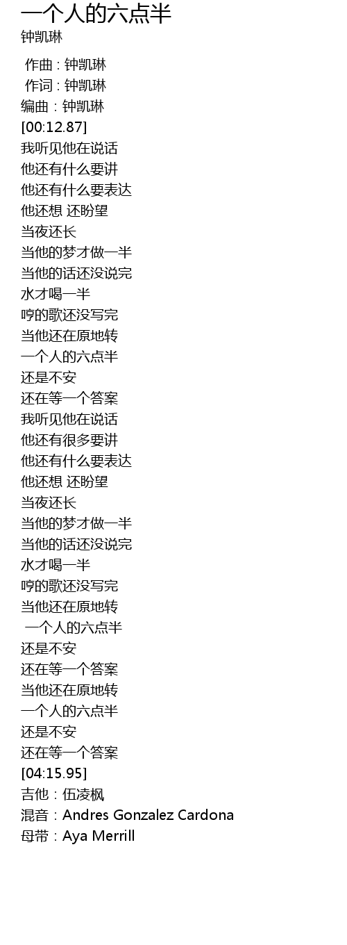 | [03:55.00] | yí ge rén de liù diǎn bàn |