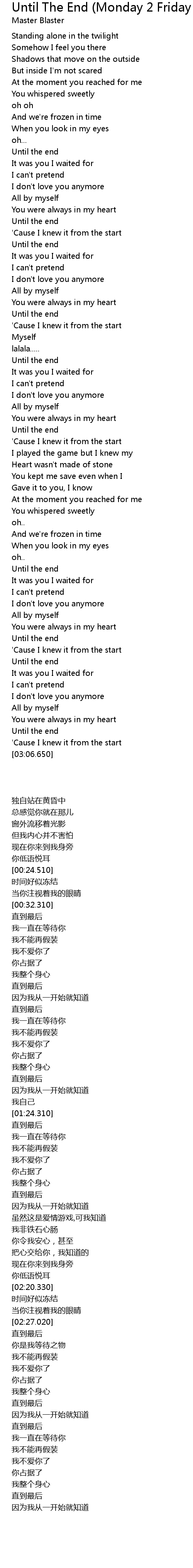 Until The End (Monday 2 Friday Radio Edit) Lyrics