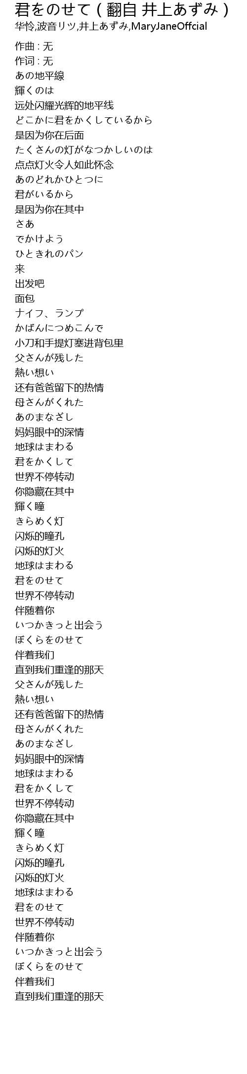 | Song | 君をのせて(翻自 井上あずみ) |