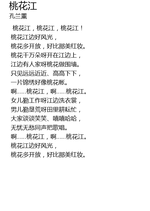 | táo huā qiān wàn duǒ ya kāi zài jiāng biān shàng, | |