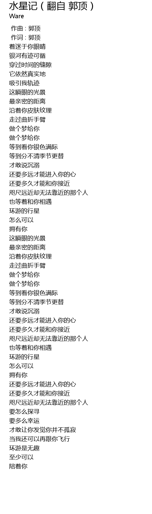 | [00:01.000] | 作词 : 郭顶 |