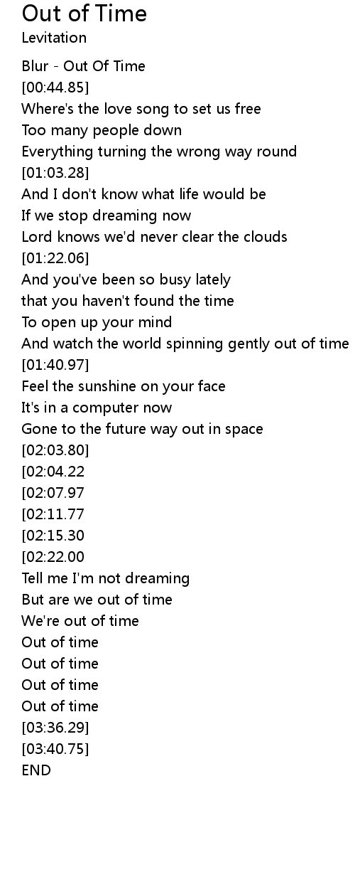 [03:04.85][02:15.30] And watch the world spinning gently out of time