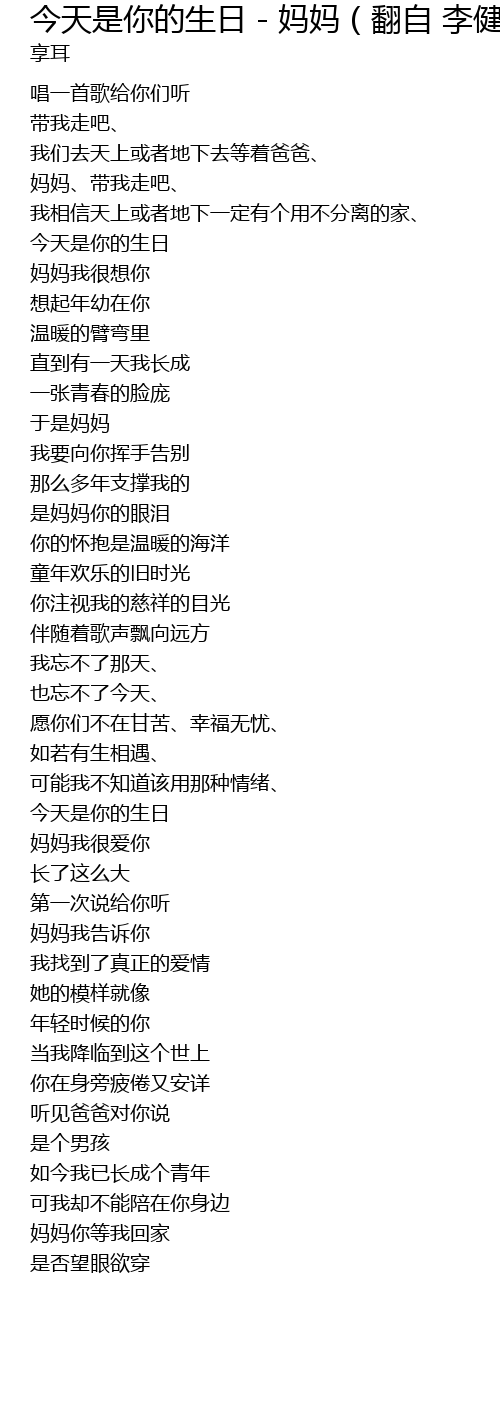 | [00:19.990] | mā mā wǒ hěn xiǎng nǐ |