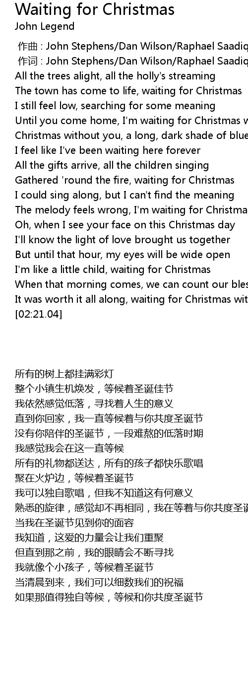 | [01:16.85] | The melody feels wrong, I' m waiting for Christmas with you |