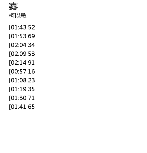 | [03:31.59][01:43.52][00:11.54] | 夜蒙上一层淡雾 |