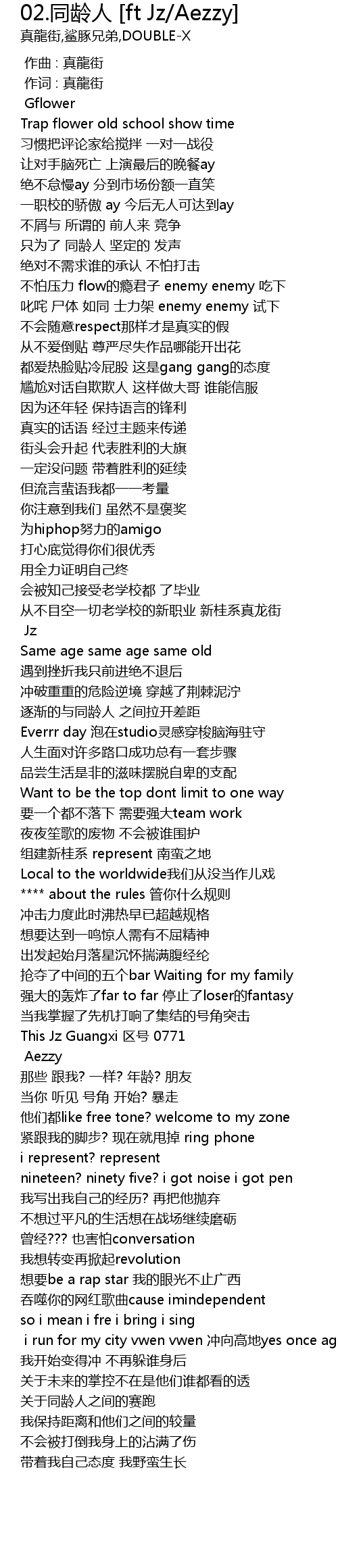 | [02:06.50] | 那些 跟我? 一样? 年龄? 朋友 |
