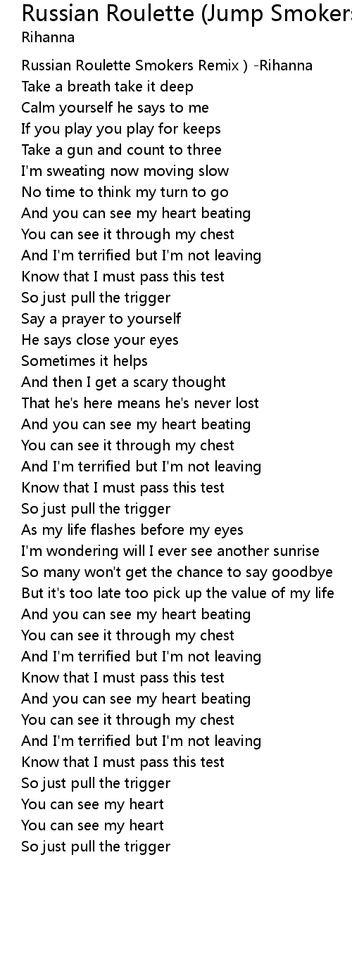 | [00:01.385] | Russian Roulette Smokers Remix Rihanna |