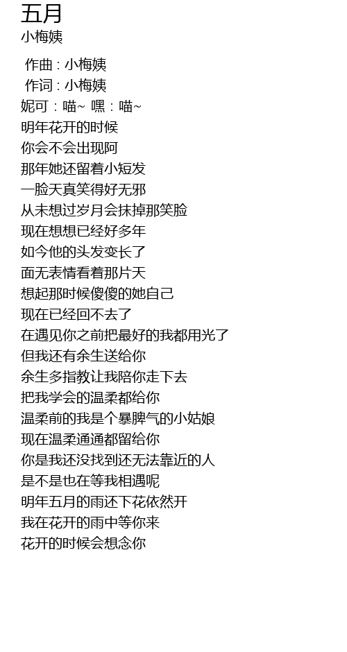 | [00:00.000] | 作曲 : 小梅姨 |