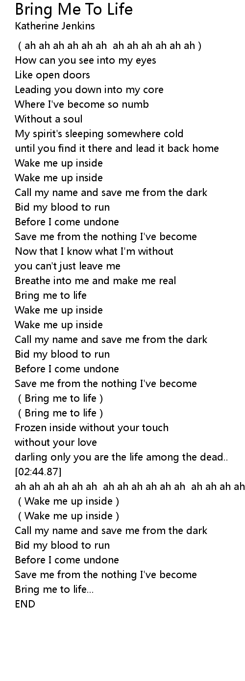 | [02:16.38] | Bring me to life |