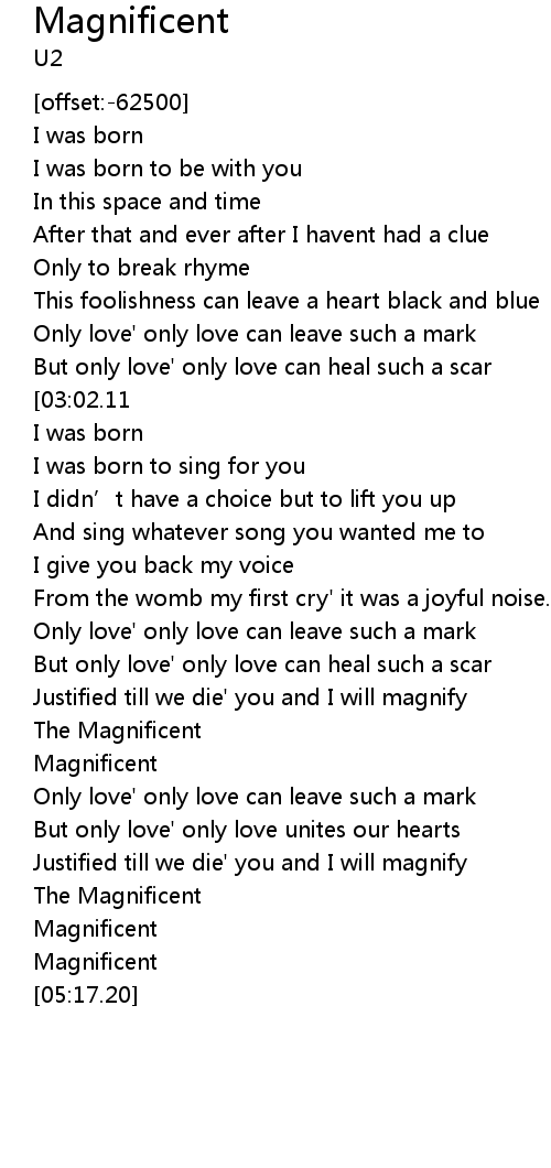 | [05:00.62] | Magnificent |