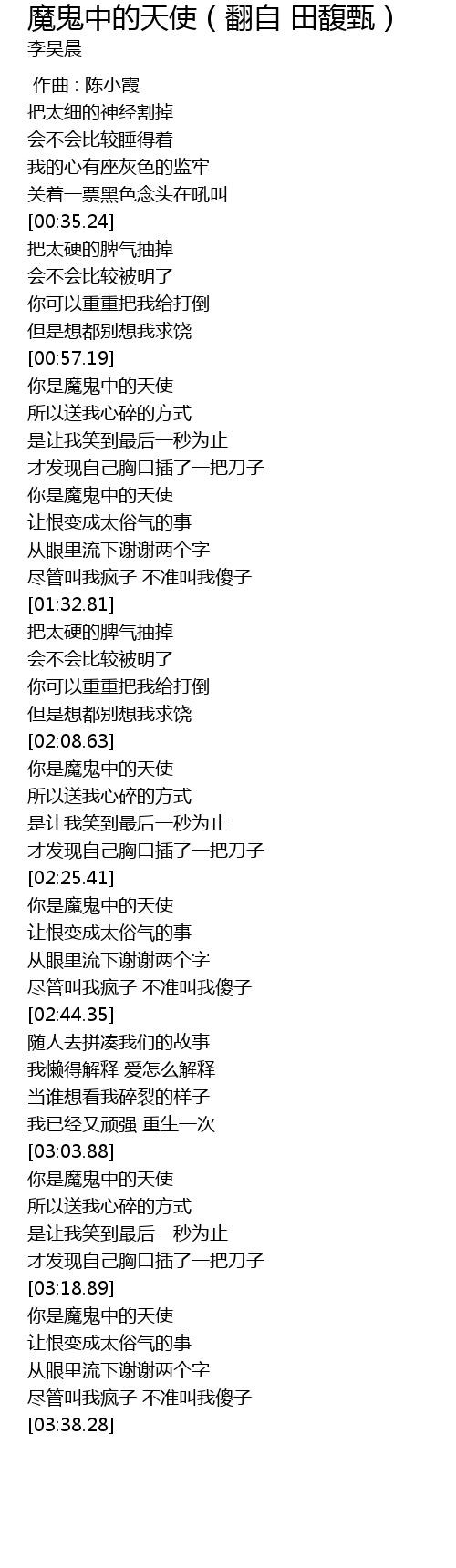 | [03:19.37] | nǐ shì mó guǐ zhōng de tiān shǐ |