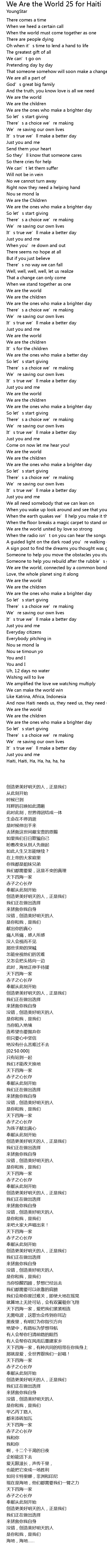 | [06:20.000] | And now Haiti needs us, they need us, they need us |