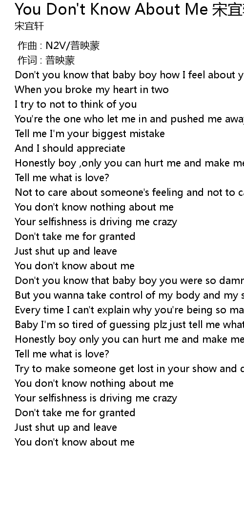 | [00:14.56] | Don't you know that baby boy how I feel about you? |