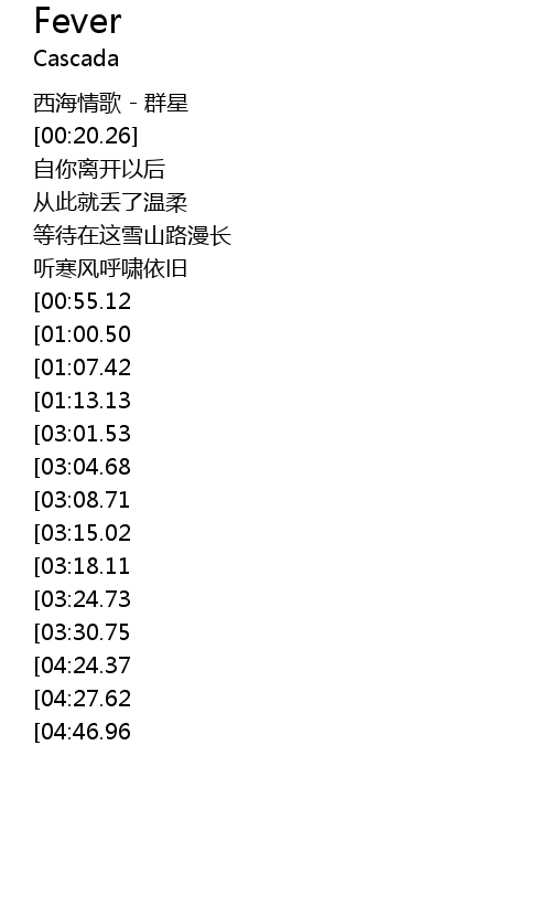 | [04:35.29][04:24.37][03:37.14][01:56.02] | 爱再难以续情缘 |