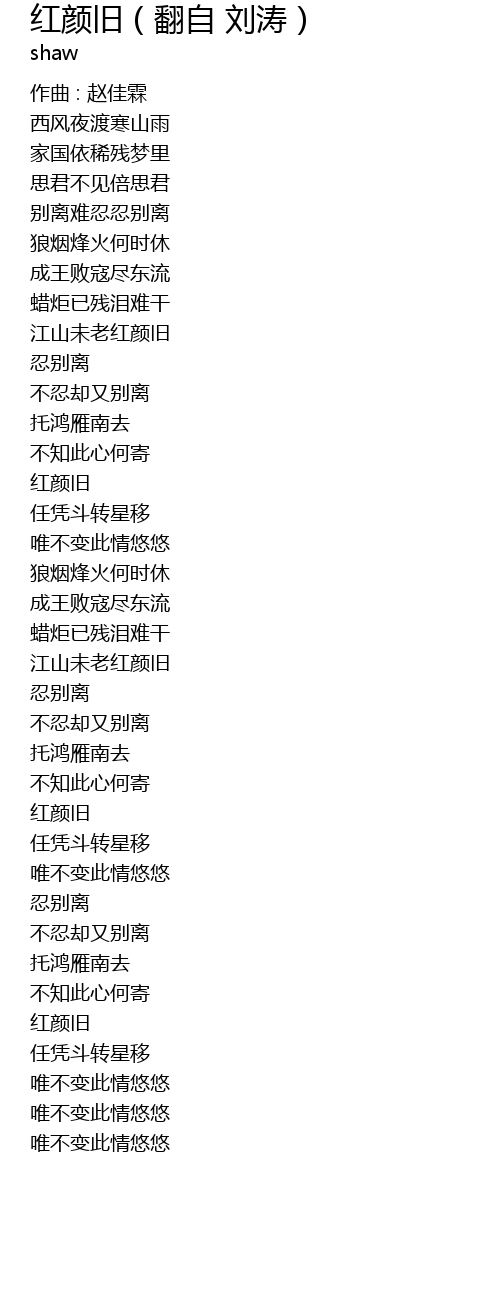 | jiāng shān wèi lǎo hóng yán jiù | |