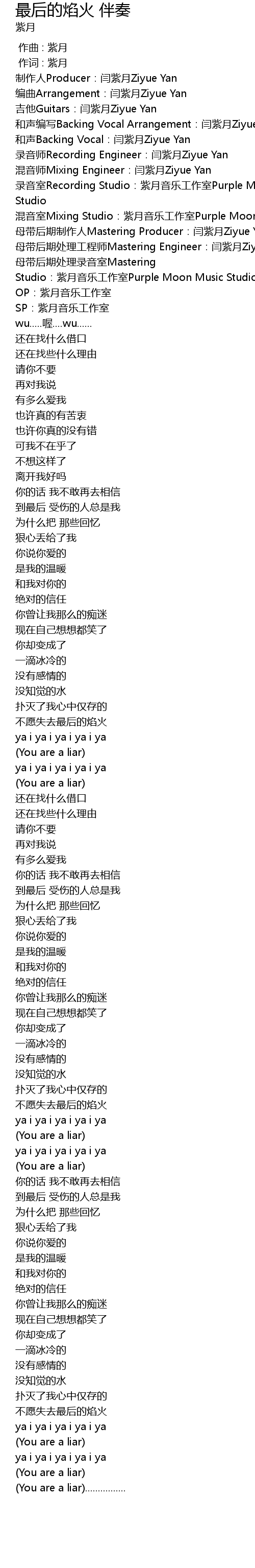 | [00:00.00] | 和声Backing Vocal:闫紫月Ziyue Yan |