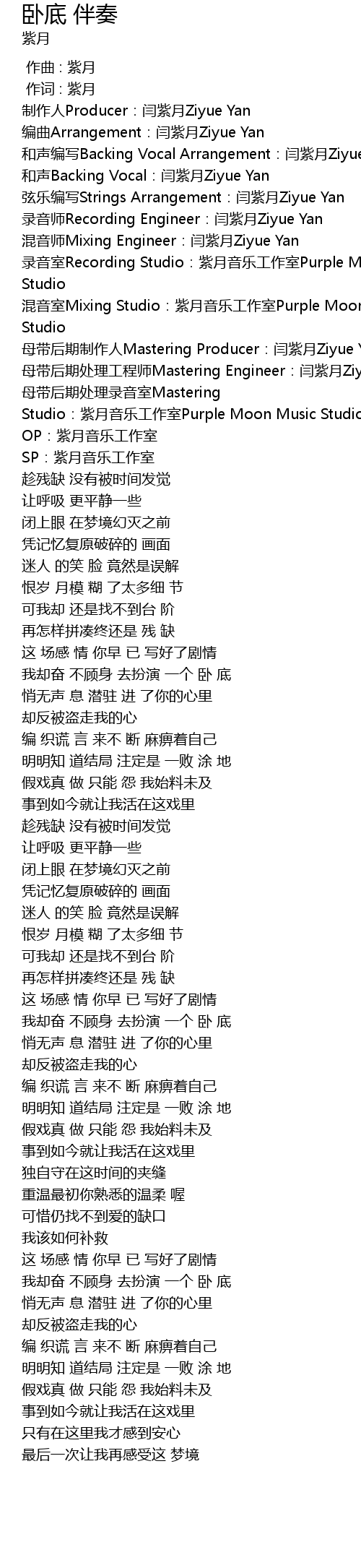 | [00:05.115] | 和声编写Backing Vocal Arrangement:闫紫月Ziyue Yan |
