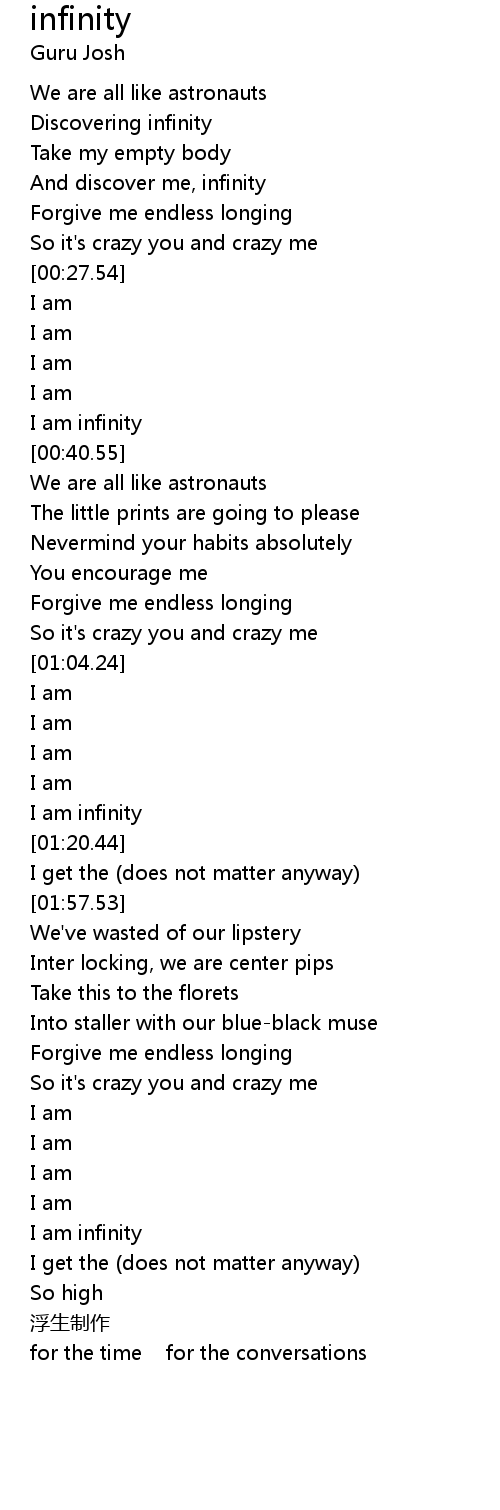 | [02:23.22] | I am infinity |