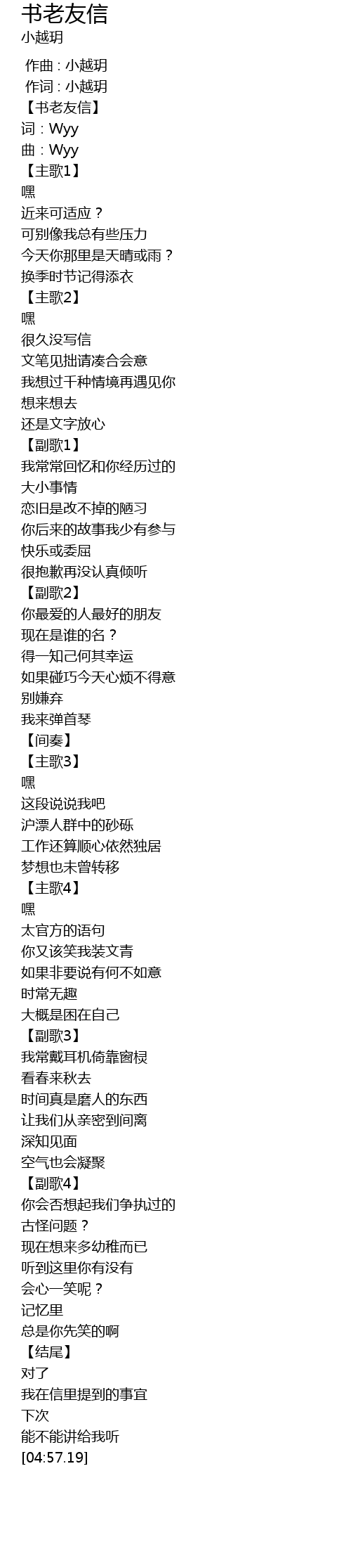 | [00:00.000] | zuò qǔ : xiǎo yuè yuè |
