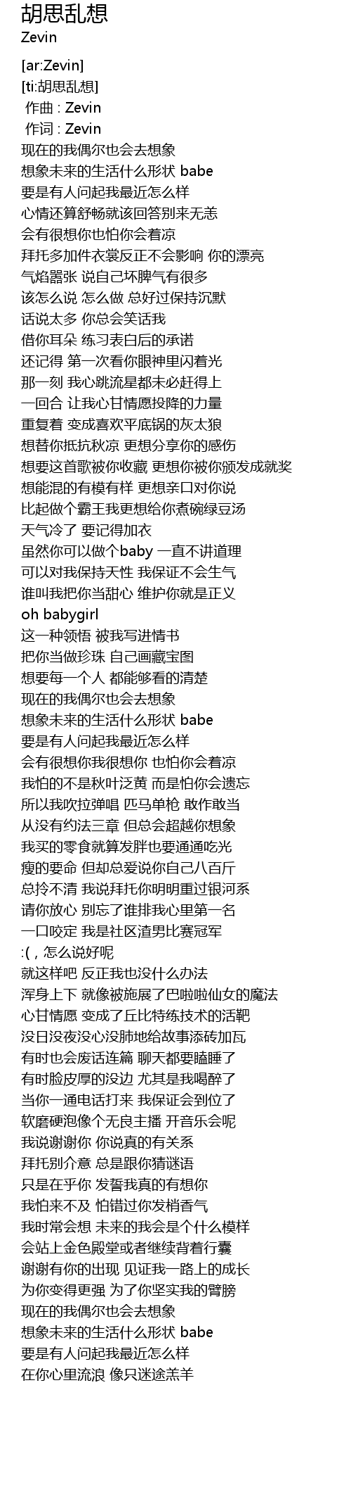 | [00:18.85] | 想象未来的生活什么形状 babe |