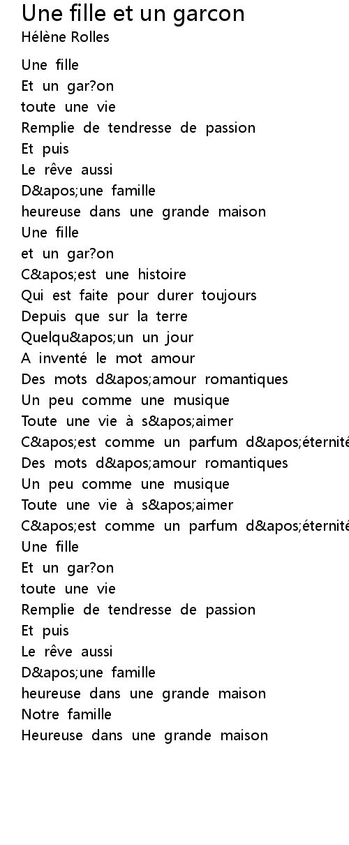 | Song | Une fille et un garcon |