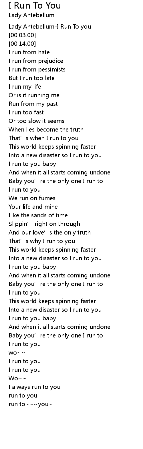 | [00:01.31] | Lady Antebellum-I Run To you |