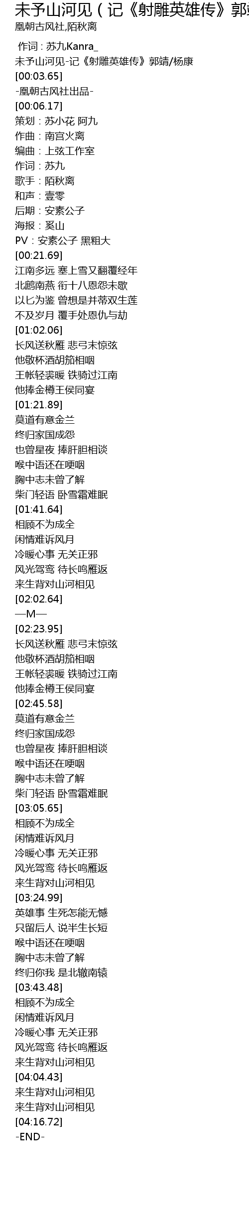 | [00:01.30] | 未予山河见-记《射雕英雄传》郭靖/杨康 |