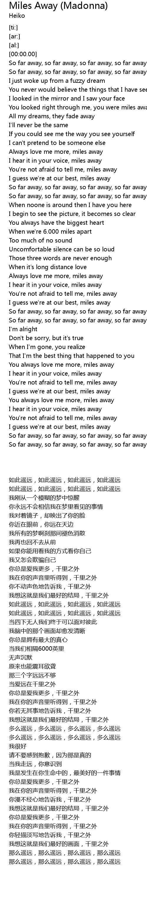 You always love me more, miles away |