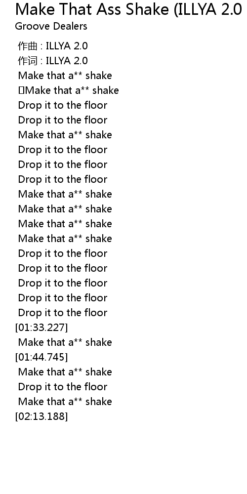 | Song | Make That Ass Shake (ILLYA 2.0 Litefeet edit) |