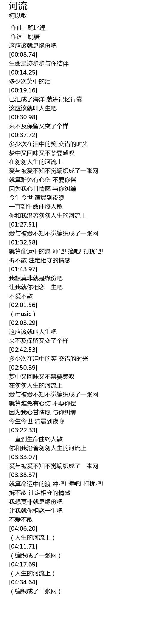 | [03:27.99] | 你和我沿著匆匆人生的河流上 |