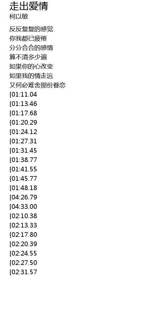 | [04:19.61][01:45.77] | 走出爱情的画面 |