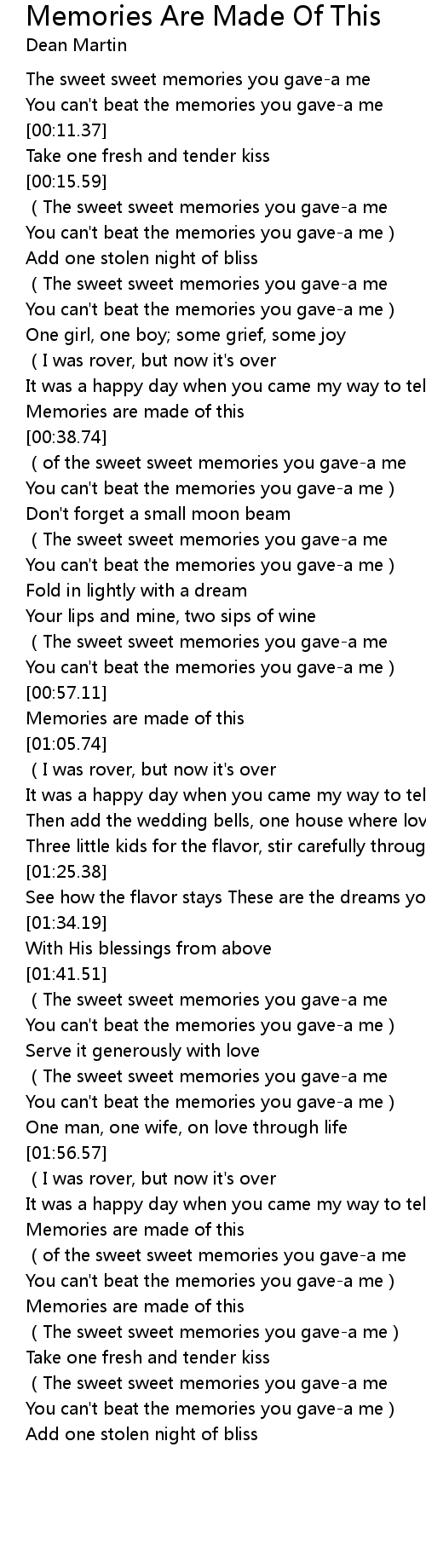 | [00:53.74] | You can' t beat the memories you gavea me |