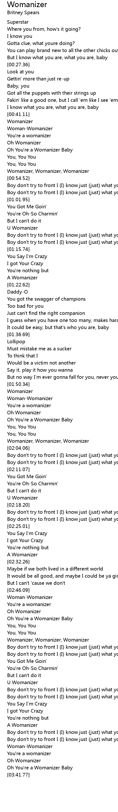Oh You're a Womanizer Baby |